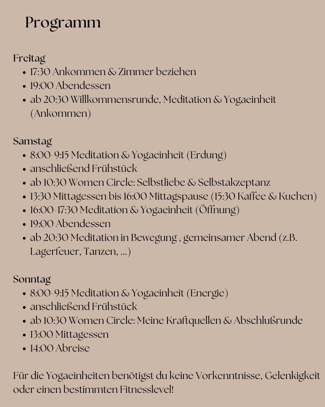Ein Wochenende für Frauen, die zur Ruhe kommen, sich spüren und auftanken möchten. Dich erwarten sanfte Yogaeinheiten, Meditationen, Achtsamkeit, Women Circles und ein naturverbundener Ort, der Raum für Tiefe und …